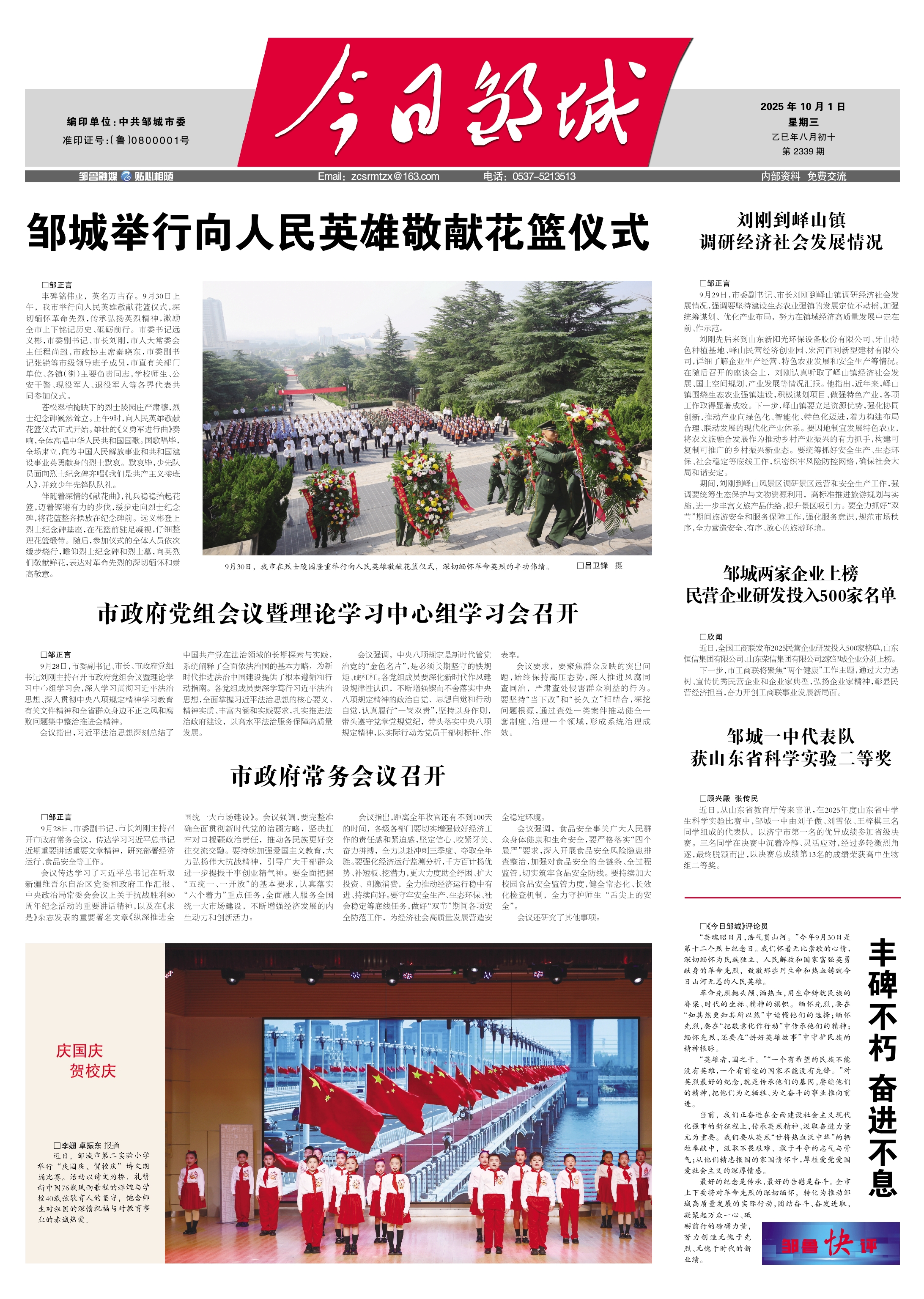 9月29日,市委副书记、市长刘刚到峄山镇调研经济社会发展情况,强调要坚持建设生态农业强镇的发展定位不动摇,加强统筹谋划、优化产业布局,努力在镇域经济高质量发展中走在前、作示范。